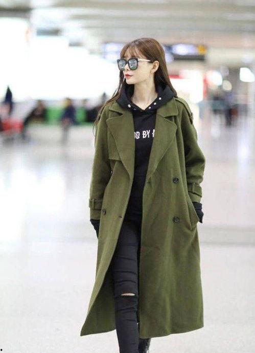 军绿色外套女明星,女明星们的穿搭典范